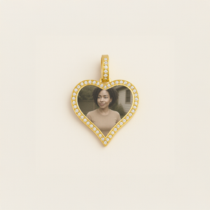 Your memories deserve a heart of gold. This heart-shaped picture pendant features an 18K gold-plated finish (white or yellow) and a sparkling pave cubic-zirconia halo around a custom 1″ heart photo insert. Add an optional back engraving—name, date, or special message—for a truly unique keepsake. Perfect as a personalized gift for anniversaries, birthdays, Mother’s Day, weddings, or memorial tributes.