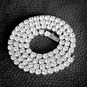 This white gold tennis necklace features a classic and stylish design that will complement almost all apparel. Featuring much larger stones than our 3mm tennis chain. It is designed to add charm to your personality and make you feel more confident. This elegant White Gold Round Cut Tennis Necklace is great for all occasions. This piece is for modern men and women and makes an excellent addition to your jewelry collection.