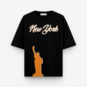 This soft black organic cotton t-shirt is given an arty twist with a graphic New York graphic from SS24. The design features the Statue of Liberty inspired by the city of New York.