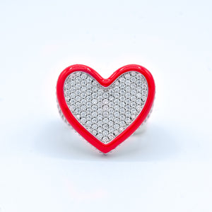 Stylish and sophisticated, this iced heart ring is the perfect way to show your special someone how much you care. Made with shining stones set in your choice of yellow or white gold, the ring features a beautiful heart-shaped enamel around the edges. The simple design of the ring makes it perfect for everyday wear, while the stones add a touch of luxury. Whether you're giving it as a gift or treating yourself, this diamond heart ring is sure to please.