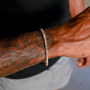 Gold Presidents new Round Cut Tennis Bracelet, available in yellow gold, is a great unisex piece. The Round Cut Tennis Bracelet is one of the fastest growing trends in hip-hop jewelry. Our new smaller 3mm round cut stones/diamonds will catch light from all angles; to keep your wrist shining all day and night.