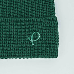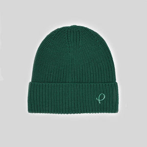 The Pres P Logo Beanie in green is a simple and sophisticated, Luxury piece. This designer beanie is an easy-to-wear style, made from 100% pure cashmere, and has our classic P logo on the cuff.  Soft details are the making of Gold Pres rich style, This beanie is spun from warm cashmere yarns in thick ribs that give it a snug fit. Get your Gold President's P Logo Beanie before they're gone!