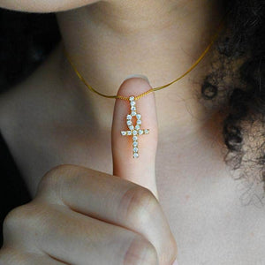The Gold President's Mini Ankh is the perfect dainty piece for everyday wear. This cross necklace’s design is inspired by the Egyptian Ankh, also called the Egyptian Cross. The Ankh denotes life, wisdom, and insight on the highest level. Looking for a timeless piece? Add our Women's mini ankh cross necklace to your jewelry collection today!