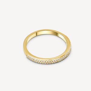 Celebre su día especial con sofisticación con este anillo de compromiso de diamantes de doble hilera de oro de 10 k. Elaborado con lujoso oro de 10k y con dos elegantes hileras de diamantes, irradia un aire de exclusividad y opulencia atemporal. Celebre para siempre con esta exquisita pieza de joyería Gold Presidents.