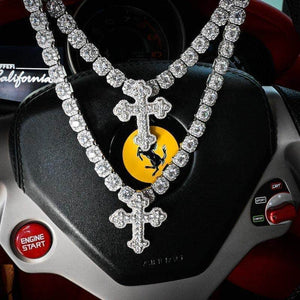 Las cruces llamativas más grandes funcionan bien en cadenas de 20" a 24".