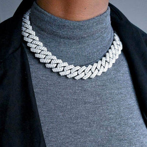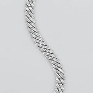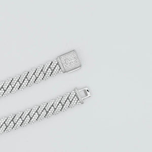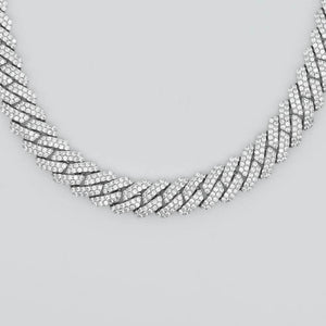 Cadena de eslabones cubanos con puntas de diamantes (19 mm) en oro blanco