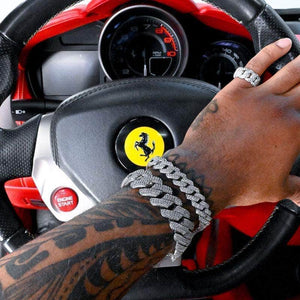 Presentamos la nueva pulsera con eslabones de punta de diamantes de 19 mm en oro blanco. Esta pulsera se presenta en oro blanco con grandes piedras engastadas en puntas. Este Enlace Cubano está garantizado para parar la fiesta. También puede comprar nuestra amplia variedad de pulseras cubanas de oro para combinar con su cadena. Destacarás entre la multitud usando estos grandes enlaces. Consulte también nuestras opciones de pulsera cubana de oro amarillo .