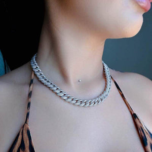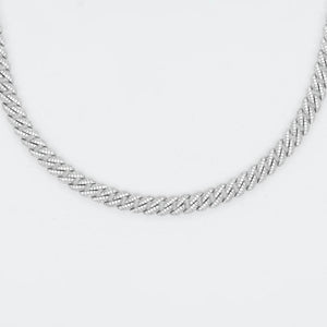 La gargantilla de eslabones cubanos más vendida ahora está disponible con eslabones más pequeños de 10 mm en color oro blanco. Muéstrale al mundo que eres el verdadero jefe con esta clásica cadena de eslabones cubanos. La cadena de eslabones cubanos presenta piedras engastadas a mano con puntas levantadas que brillan desde todos los ángulos. La Cadena Cubana de Oro Blanco es la mejor manera de mantener las cosas simples y al mismo tiempo hacer una declaración. Puedes seleccionar desde cadenas del tamaño de gargantilla hasta una longitud más larga. Esta gargantilla cubana de lujo cuenta con un diseño elegante que ofrece una declaración helada audaz. Ya sea que quieras hacer alarde de nuestro paquete de eslabones cubanos solo o combinarlo con otras joyas, nunca te equivocarás.
