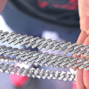 Chaîne à maillons cubains à griffes baguette (12 mm) en or blanc