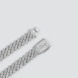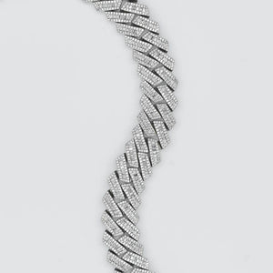 Présentation de la nouvelle chaîne à maillons cubains à griffes baguette diamant de 19 mm. Cette chaîne est présentée en or blanc avec de grosses pierres serties sur griffes placées sur le dessus de la chaîne. Ces chaînes ras du cou à maillons cubains pour arrêter la fête. Vous pouvez également acheter notre grande variété de bracelets Cuban Link assortis à votre chaîne. Vous vous démarquerez de la foule en portant ces gros maillons.