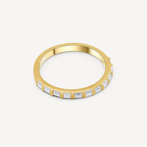 Cette magnifique bague de fiançailles en diamant baguette en or 10 carats présente un diamant baguette à une rangée serti dans un anneau en or jaune 10 carats. Son design classique et intemporel met en valeur la beauté du diamant, ce qui en fait un choix idéal pour vos fiançailles spéciales.