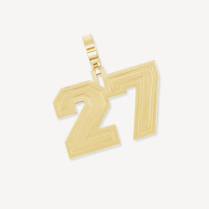 Pendentif collier numéro en or 10 carats entièrement personnalisable. Présenté en or jaune et disponible en or jaune.