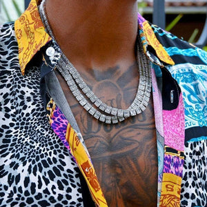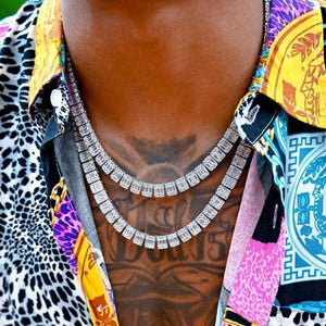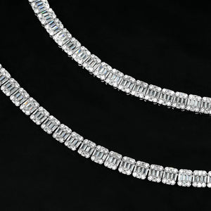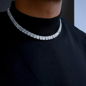 Le classique collier tennis à maillons ovales baguette fait ici une apparition audacieuse en or blanc. La chaîne est bien construite pour résister même à une usure quotidienne. Le collier est poli pour un éclat invitant qui attire l'attention de tous les yeux bénis par sa présence. Faites passer votre collection de bijoux au niveau supérieur en ajoutant le collier tennis à maillons ovales baguette Gold President.