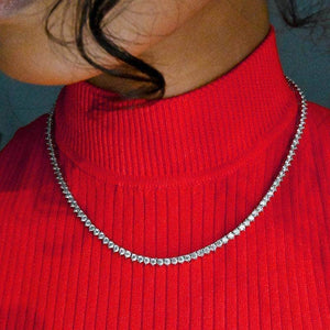 L'un de nos best-sellers pour femmes, la pièce élégante parfaite à ajouter à votre collection. Chaque pierre étincelante est taillée à la perfection à 3 mm ; son style à 3 griffes est unique sur le marché de la bijouterie. Ce collier de tennis rond est une pièce unisexe parfaite et un excellent ajout à toute collection de bijoux soucieuse de la mode.