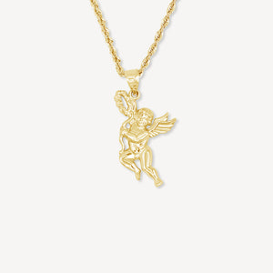 Ce délicat pendentif ange est un magnifique bijou que vous pouvez porter pour être plus intime avec le royaume spirituel et votre foi. Sculpté en or 10 carats, votre ange gardien sera toujours près de vous et vous protégera pendant que vous porterez ce pendentif.