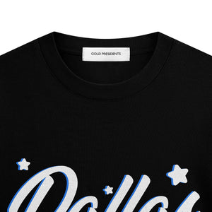 This soft black organic cotton t-shirt is given an arty twist with a graphic Dallas motif from SS24. The design features joyful stars inspired by the city of Dallas.